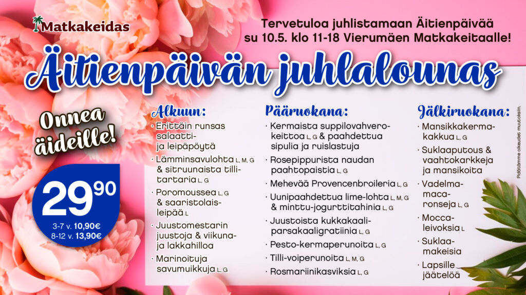 Vierumäen Matkakeitaan palveluihin kuuluvat monipuoliset ruokailumahdollisuudet aamusta myöhäiseen iltaan. Saat nauttia ravintolatason makuelämyksistä noutopöydästä aamiaisen sekä lounaan aina vähintään klo 18 asti. Lisäksi a la carte -listan herkut ja pikaruokanälkään Hesburgerin ja Kotipizzan tutut ja maistuvat tuotteet.